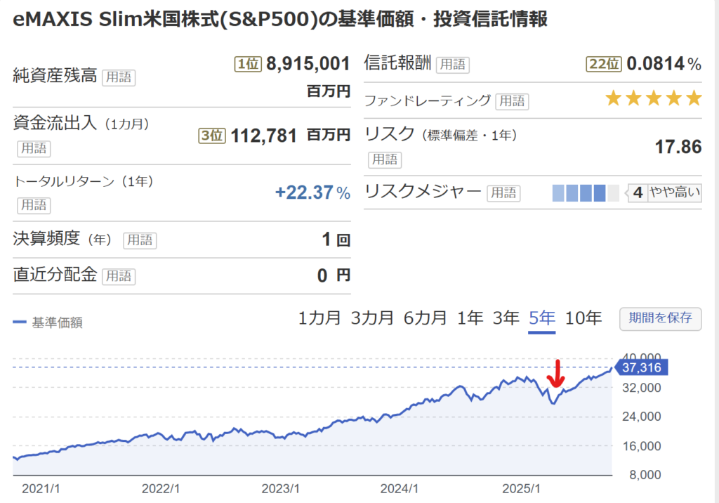 実際にヌレさんも積み立てている「eMAXIS Slim米国株式(S&P500)」もそう。